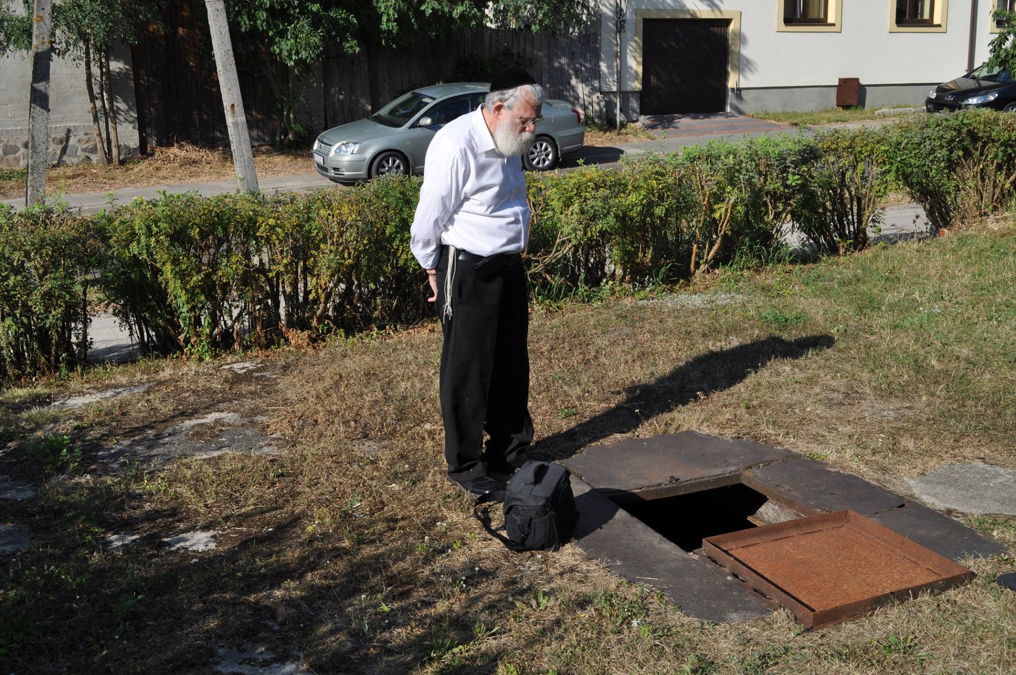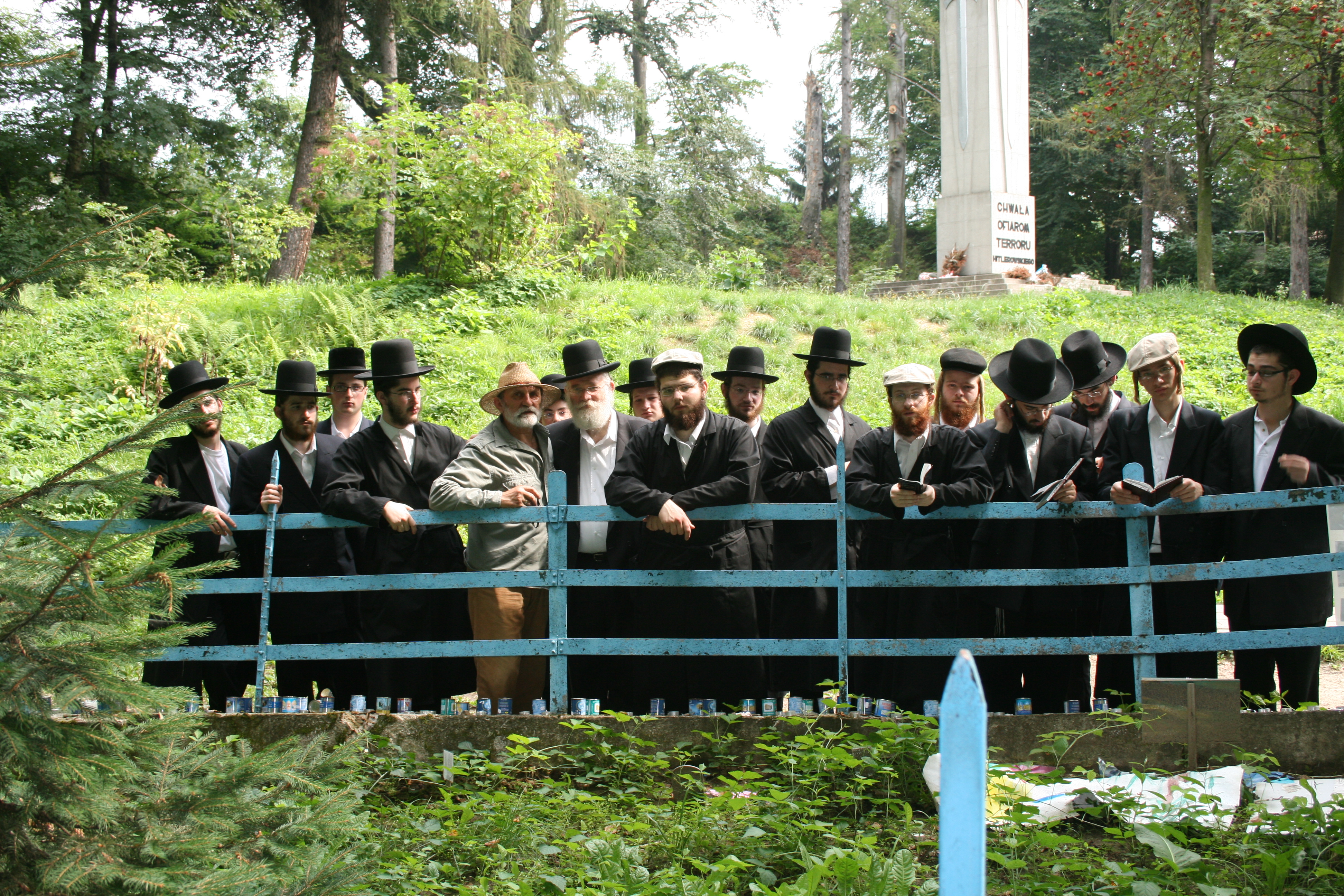 Bishop of Jaslow paying his respects at the tzion of Harav Chune Halberstam Ruv of Kołaczyce.